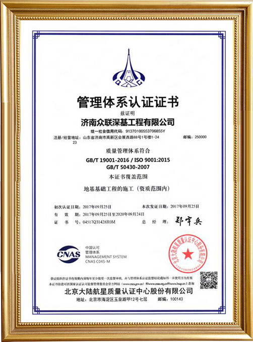 山東眾聯(lián)恒信工程集團有限公司成立于2010年4月20日,注冊資金2000萬元,固定資產(chǎn)8500萬元,公司主要從事地基基礎(chǔ)、勘察、設(shè)計等方面的專業(yè)承包,地基基礎(chǔ)專業(yè)施工資質(zhì)壹級。